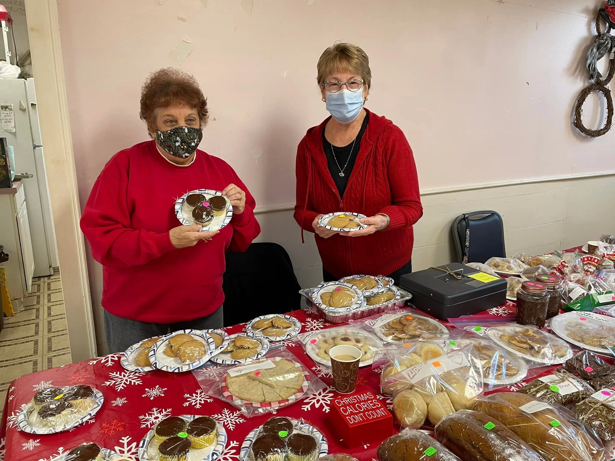 Barbara and Norma with samples of baked goods available at the Harvest & Holly Fair